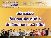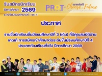 ประกาศ รับสมัครนักเรียนชั้นมัธยมศึกษาปีที่ 3 (เดิม) เข้าศึกษาต่อขั้นมัยมศึกษาปีที่ 4 ปีการศึกษา 2569