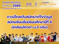 ดาวน์โหลดใบสมัคร/แก้ไขข้อมูล ชั้นมัธยมศึกษาปีที่ 4 นักเรียนโควตา ม.3 (เดิม)