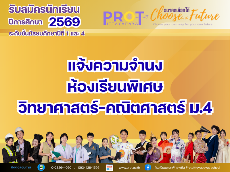 ประกาศรับสมัครนักเรียนชั้น ม.1 และ ม.4 ประเภทห้องเรียนพิเศษ ปีการศึกษา 2569