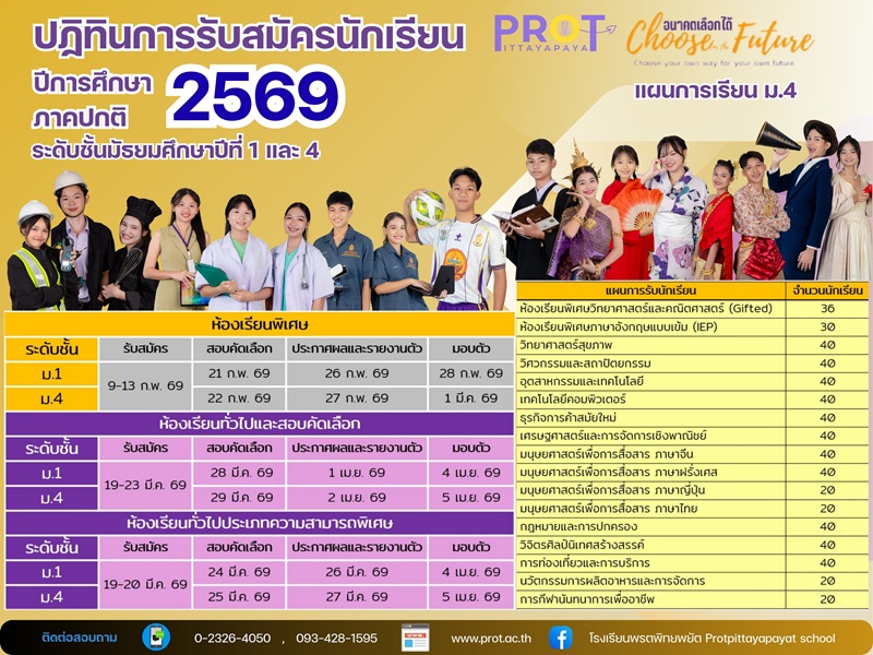 ประกาศรับสมัครนักเรียนเข้าศึกษาต่อระดับชั้น ม.1 และระดับชั้น ม.4 ประเภทห้องเรียนพิเศษประจำปีการศึกษา 2568