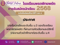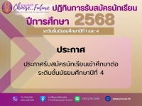 ประกาศรับสมัครนักเรียนเข้าศึกษาต่อระดับชั้นมัธยมศึกษาปีที่ 4 ประจำปีการศึกษา 2568