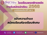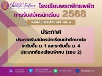 ประกาศรับสมัครนักเรียนเข้าศึกษาต่อระดับชั้นมัธยมศึกษาปีที่ 1 และระดับชั้นมัธยมศึกษาปีที่ 4 ประเภทห้องเรียนพิเศษ (รอบ 2)
